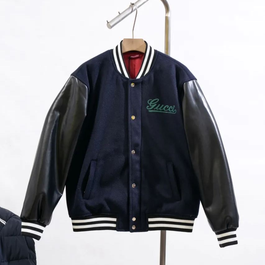 GUCCI Wool and leather varsity jacket, navy(794814-Z8BS9-4215)