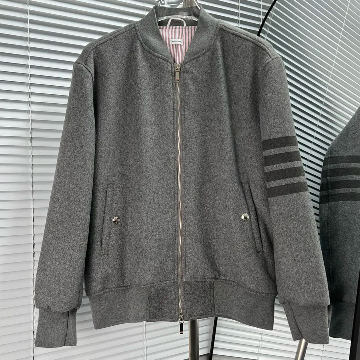 THOM BROW Navy Wool Cashmere Flannel Blouson Tonal 4-Bar Jacket (MJO030A-06393-415)