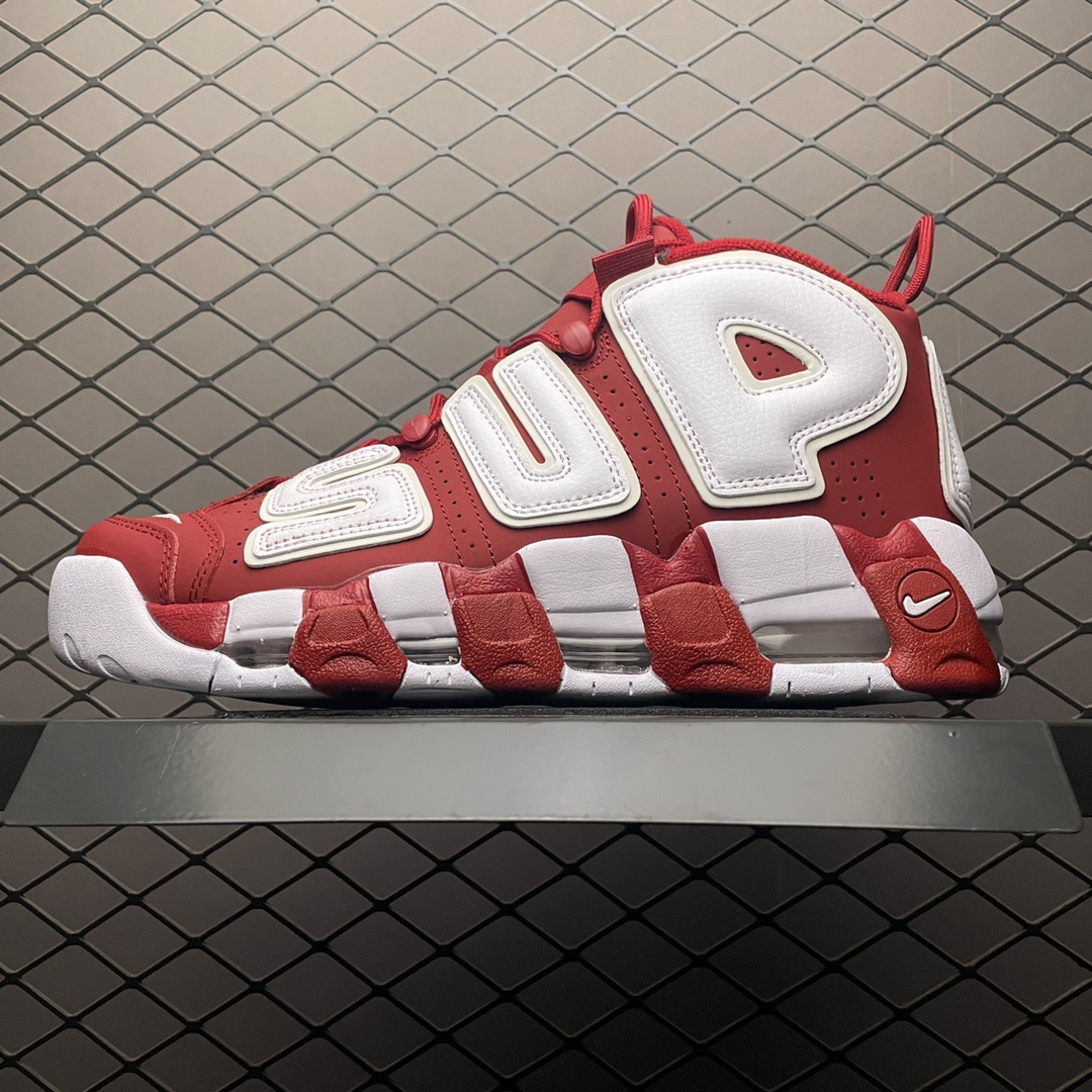 シュプリーム バスケットボールシューズ/Supreme × Nike Air More Uptempo "White/Red"(902290-600)