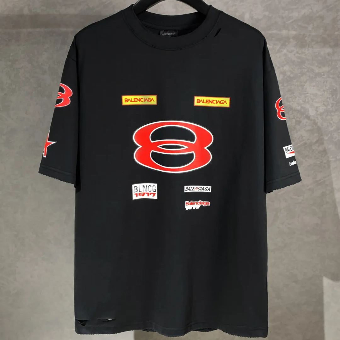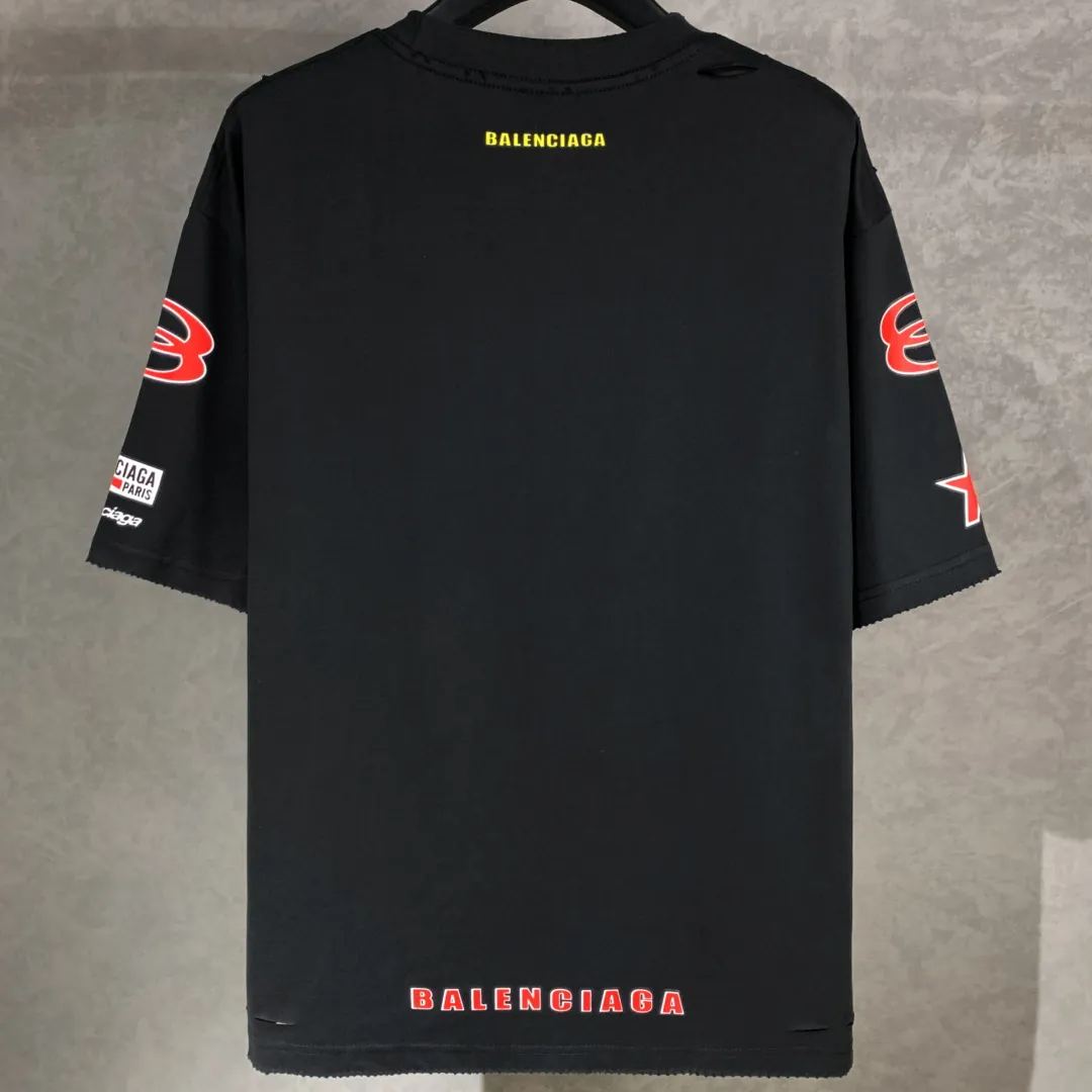 BALENCIAGA Men's Sponsor Logos T-shirt Oversized in Black Faded(831305TSVE21041)
