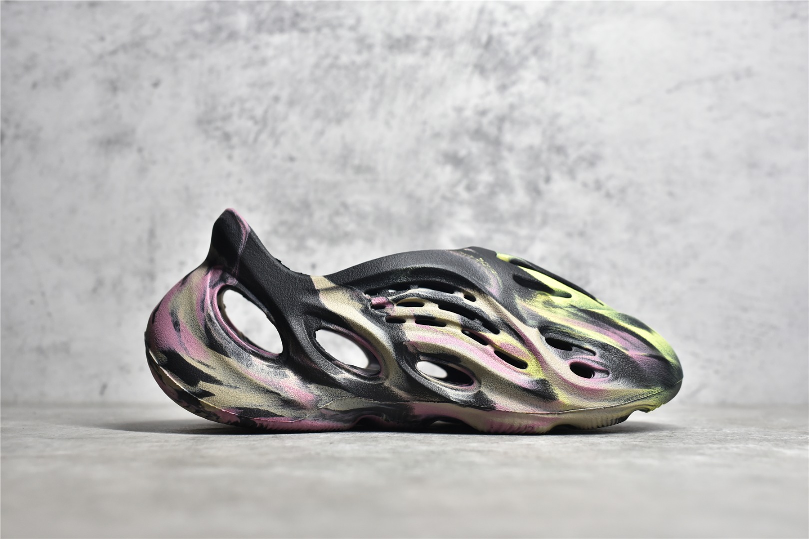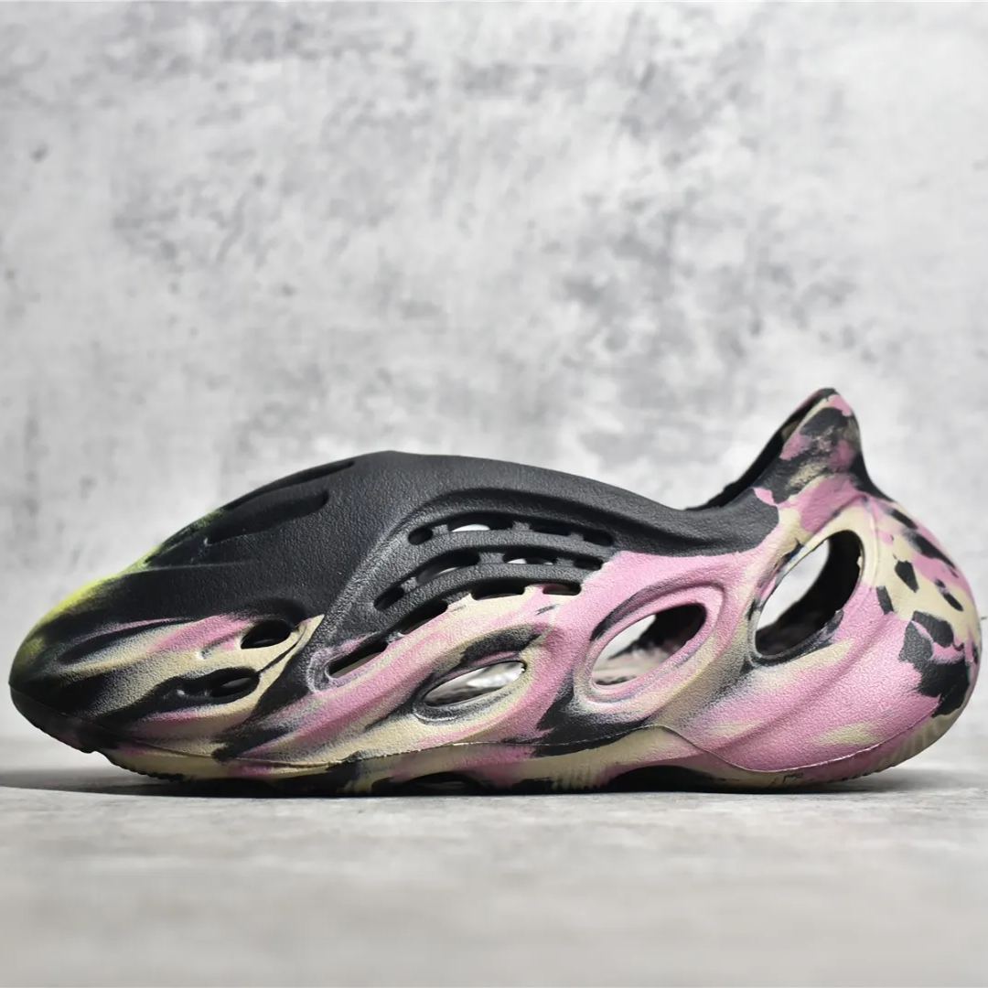 アディダス Yeezy フォーム ランナー「MX カーボン」は、カラフルなブレンドパレットで未来的なクロッグをアップデートします。 軽量でありながら耐久性のある EVA フォームで作られた一体成型のビルドは、黒、グレー、黄色、ピンクが渦巻き状に混ざり合うように仕上げられています。 さまざまな形状とサイズの通気ポートがつま先と中足部全体に空気の流れを提供し、彫刻された履き口とかかとがしっかりとしたフィット感を提供します。 外装のブランディングは、アウトソールの控えめな adidas ロゴに限定されています。