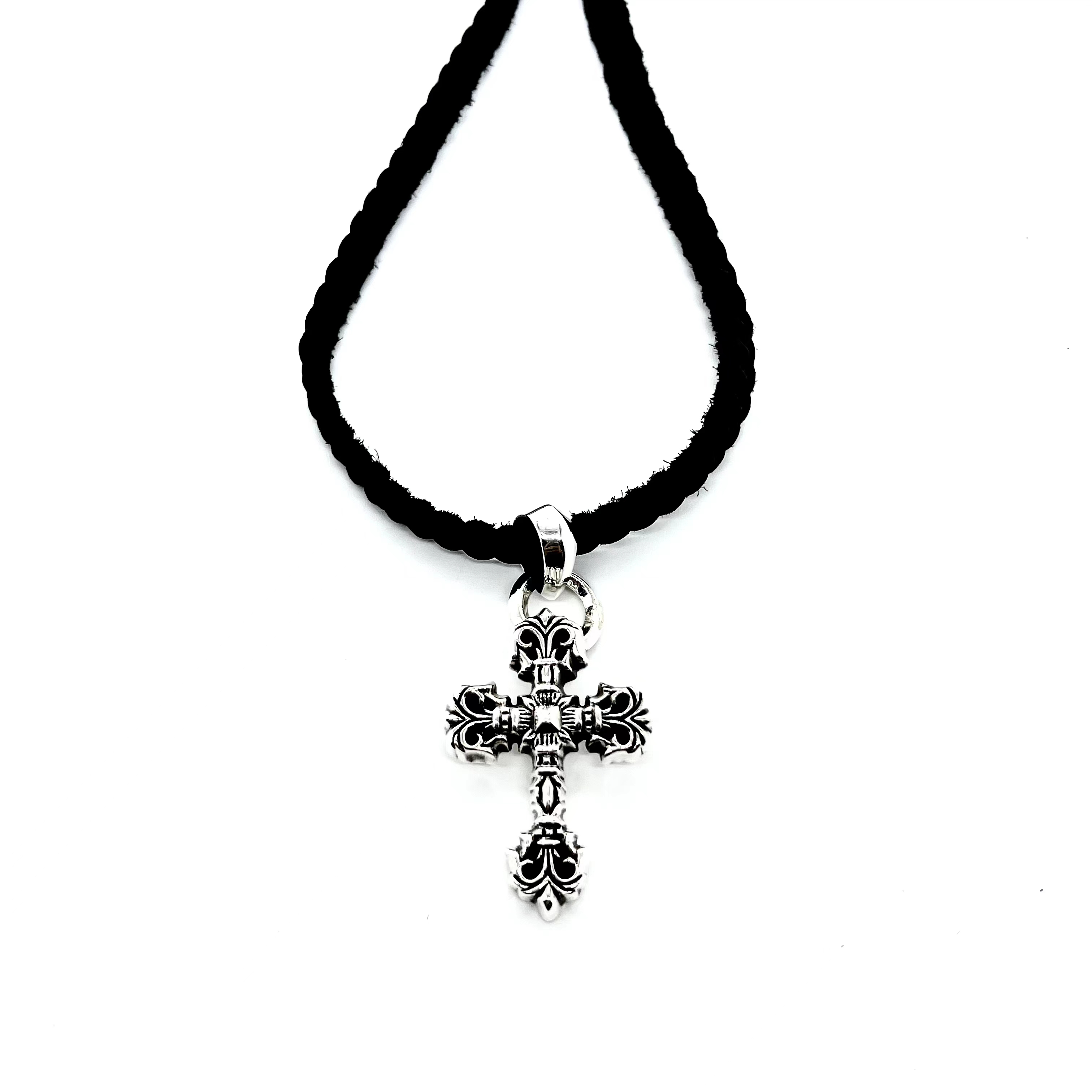 CHROME HEARTS Flame Cross Leather Cord Braided Necklace(CHROME HEARTS 060)