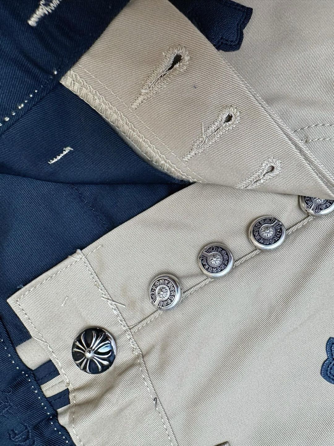 CHROME HEARTS CHINOS CEM CRS PTCH CROSS-PATCH LEATHER-TWILL PANTS (CH-032175088)